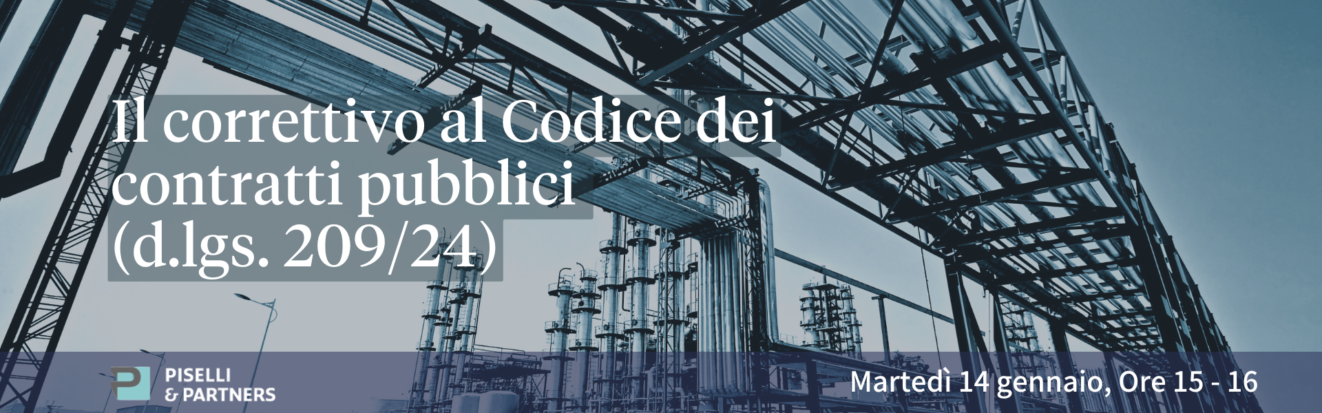 Con questa iniziativa lo Studio Piselli & Partners, da sempre attento alle esigenze di aggiornamento di stazioni appaltanti, operatori economici e professionisti del settore, ha organizzato per il prossimo 14 Gennaio un webinar gratuito, in cui vuole offrire una prima rappresentazione delle principali tematiche interessate del correttivo, anche in prospettiva dei necessari approfondimenti richiesti per la relativa piena operatività.