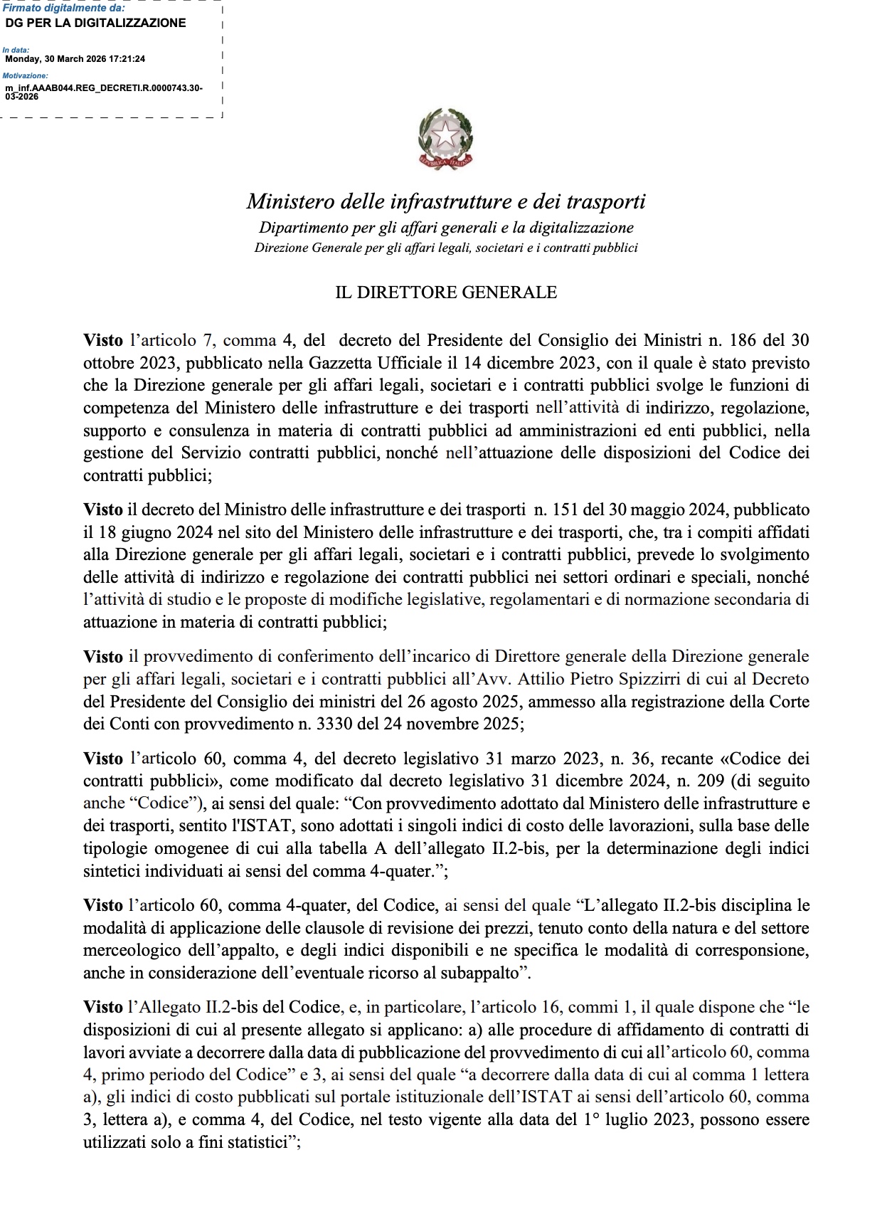 - Il decreto dirigenziale MIT n. 743/2026 del 30 marzo 2026