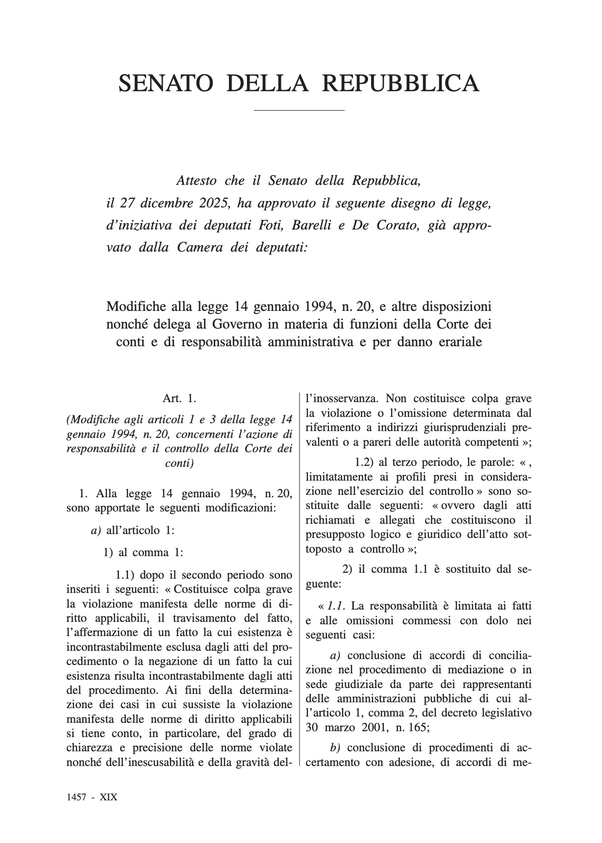 Approvata la riforma della Corte dei conti: novità in materia di responsabilità erariale e controlli del giudice contabile