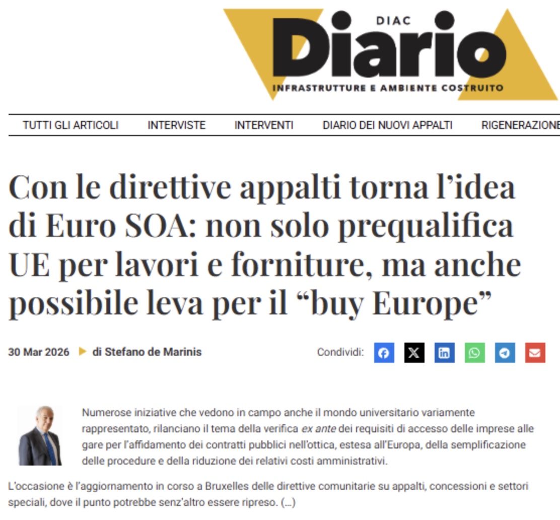 Con le direttive appalti torna l’idea di Euro SOA: non solo prequalifica UE per lavori e forniture, ma anche possibile leva per il ‘buy Europe’