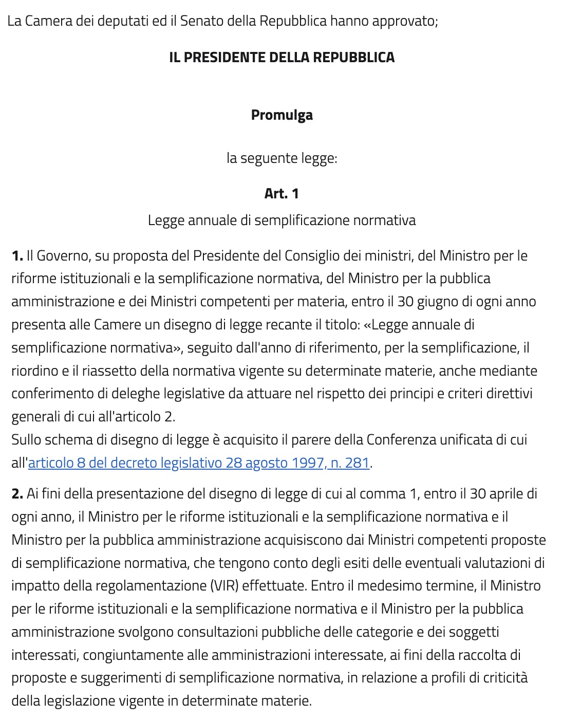 La legge annuale di semplificazione e miglioramento della qualità normativa