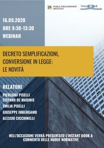 LE NOVITÀ INTRODOTTE DALLA LEGGE DI CONVERSIONE AL DECRETO SEMPLIFICAZIONI: I PROFESSIONISTI DI PISELLI&PARTNERS RELATORI AL WEBINAR ORGANIZZATO DA PUBLIC PROCUREMENT INSTITUTE E VENEZIA STUDI