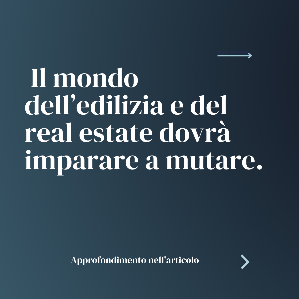 In questo scenario, il mondo dell’edilizia e del real estate dovrà imparare a mutare. «Le imprese di costruzioni – considera Millevoi – non potranno più limitarsi a pensare alla progettazione o alla costruzione. L’imprenditore appaltatore dovrà diventare lui stesso un disruptor o mettere in atto strategie per evitare la disruption».