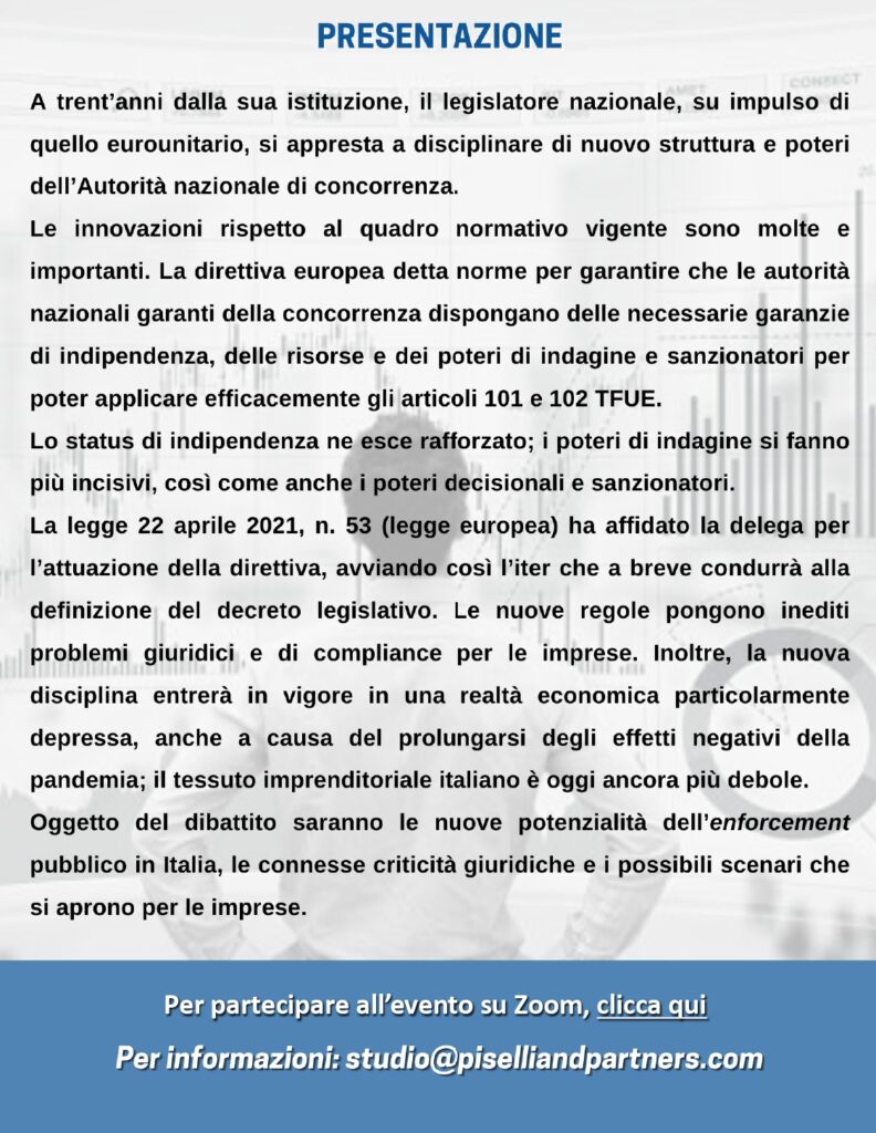 NUOVI POTERI DELL’AGCM: IL WEBINAR GRATUITO DI PISELLI&PARTNERS CON PPI E VENEZIA STUDI