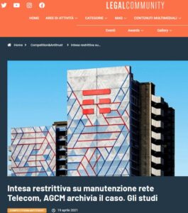 SU LEGAL COMMUNITY L’ARCHIVIAZIONE OTTENUTA DA PISELLI&PARTNERS IN AGCM IN TEMA DI INTESE RESTRITTIVE DELLA CONCORRENZA